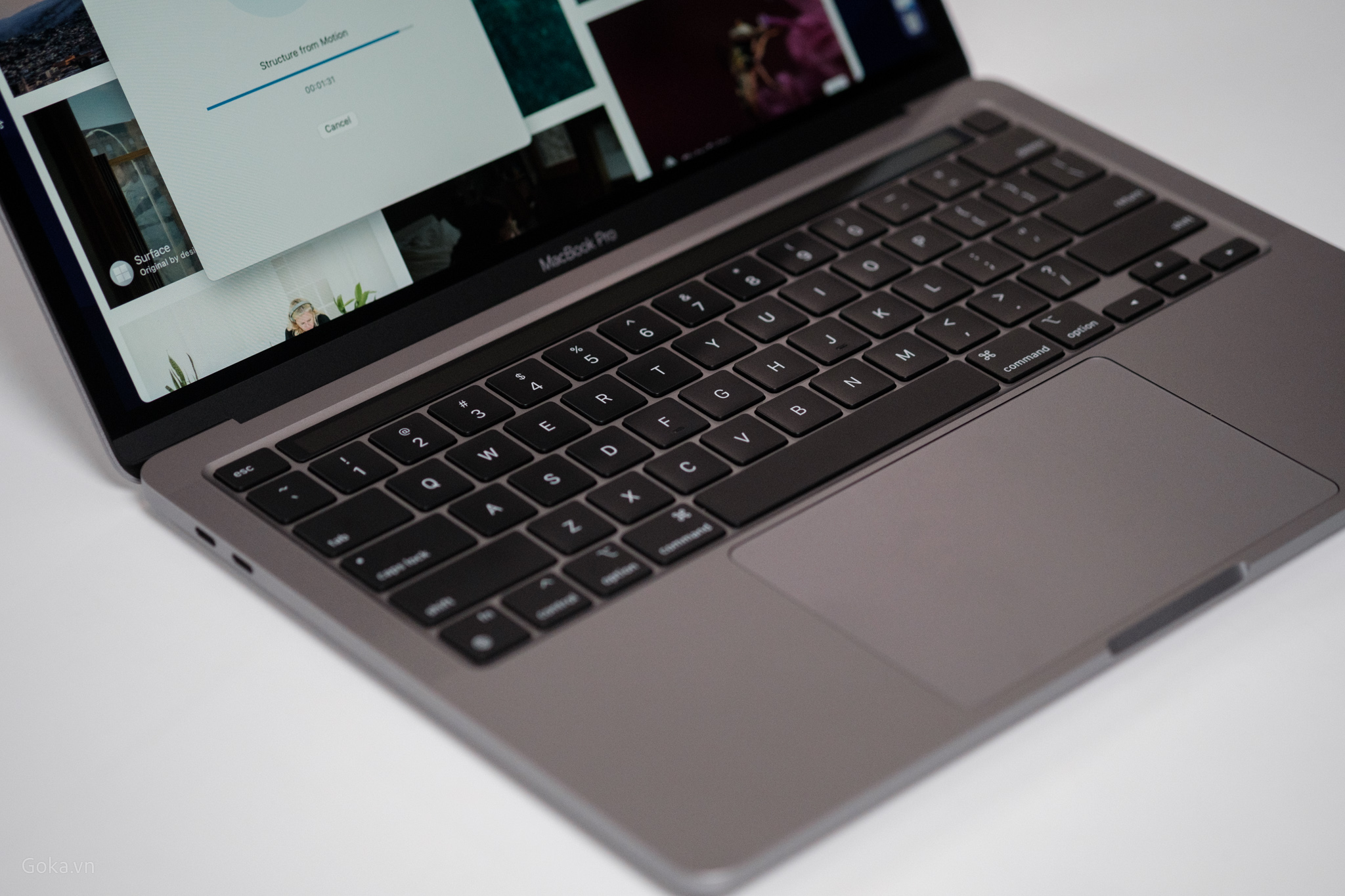 Bàn phím MacBook Pro 13″ M2 vẫn theo cơ chế cắt kéo (Scissor Mechanism) cho hành trình phím sâu, gõ tốt, bền bỉ.