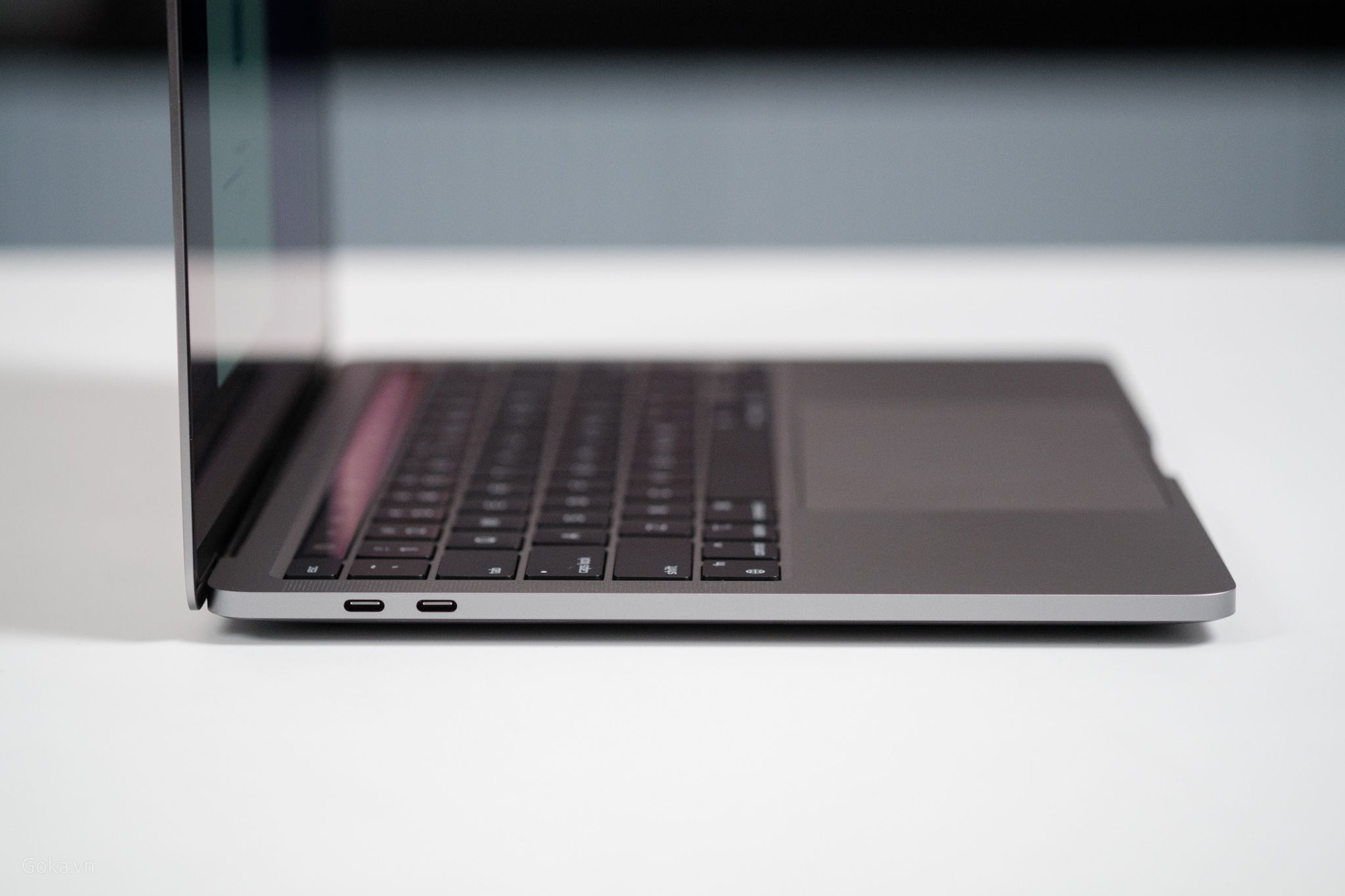 Cạnh bên trái MacBook Pro 13” M2 có 2 cổng USB-C chuẩn Thunderbolt 3 / USB4. Cạnh bên phải máy thì vẫn có jack tai nghe 3.5mm.